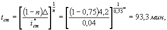 где В - длина склона водостока (ширина водосбора), м; V - скорость движения воды в лотке или канаве на расчетном участке; η - коэффициент, зависящий от отношения τ/tст Значения η определяются по табл. 6.