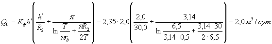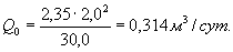 где Q0 - расход (дебит) воды на 1 пог. м дренажа.