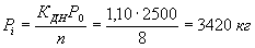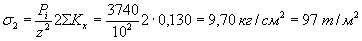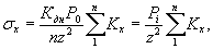 где Р0 - статическая нагрузка на одно колесо главной опоры самолета; qв - внутреннее давление воздуха в пневматике. Отношение сторон равновеликого прямоугольника площади отпечатка принимается В/Q = 2. Коэффициент динамичности Кдн принимается в зависимости от высоты засыпки: Высота засыпки, м Кдн 0,75 1,20 1,00 1,15 1,50 1,00 2,00 1,00 3,00 1,00 Величина элементарной сосредоточенной силы Pi, приходящейся на каждую из элементарных площадок, равна