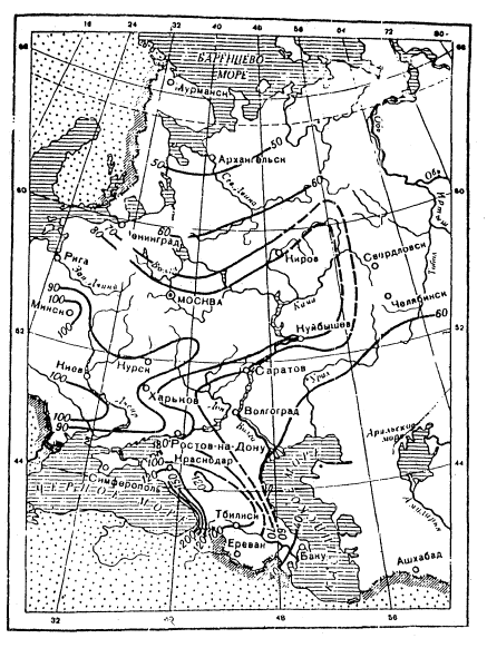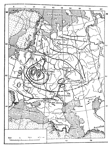 СОДЕРЖАНИЕ Настоящее Руководство разработано в развитие СНиП II 47-80. "Аэродромы. Нормы проектирования" кафедрой "Аэропорты" МАДИ. Оно может быть использовано при проектировании водоотвода и дренажа на искусственных покрытиях и грунтовых участках летных полей аэродромов гражданской авиации, а также в качестве учебного пособия при подготовке инженерно-технического состава по специальности "Строительство аэродромов". Руководство разработали д-р техн. наук Г.И. Глушков, канд. техн. наук Н.И. Кузовщиков, инженеры А.А. Чутков, Б.А. Виноградов. Утверждено начальником ГПИ и НИИ ГА Аэропроект В.Н. Ивановым 18.12.80. 1. ОБЩИЕ ПОЛОЖЕНИЯ1.1. Использование водоотвода и дренажа позволяет исключить переувлажнение грунтов в основании покрытий и поверхностных слоев летного поля поверхностными и грунтовыми водами повысить прочность, устойчивость и долговечность аэродромных покрытий, а также сократить нелетные периоды времени и улучшить условия эксплуатации грунтовых летных полос. Водоотвод и дренаж территории аэродрома должны проектироваться с учетом климатических и гидрогеологических условий района строительства, типа водного питания, конструкций аэродромных покрытий, вертикальной планировки территории аэродрома, рельефа местности и других факторов. 1.2. Грунтовые основания следует проектировать с учетом деления территории СССР на климатические зоны (рис. 1); типов местности по гидрогеологическим условиям (табл. 1); видов и свойств грунтов в районе строительства аэродрома.