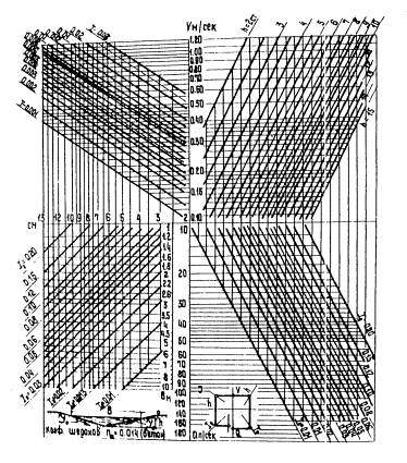 где V - скорость подхода к решетке, равная скорости в лотке. Диаметры перепускных труб от дождеприемных и тальвежных колодцев к коллекторам определяются по формуле (или номограмме на рис.7 приложения 6)