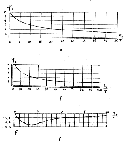 Значений функций φ1, φ2 и F определяются по графику на рис. 3