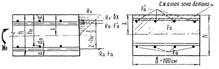Для сечений с ненапрягаемой арматурой в предварительно-напряженных плитах коэффициент ψδ следует принимать равным 0,6; μ - коэффициент армирования; b - расчетная ширина поперечного сечения плиты, принимаемая равной 100 см. 3.53 (5.55). Предельный изгибающий момент Мпр следует определять по формулам для покрытий: бетонных и армобетонных железобетонных с ненапрягаемой арматурой