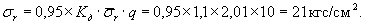 где σт = 1 кгс/см2 - на 10 м длины напрягаемого участкам длина участка принята равной 50 м, σт = 5 кгс/см2; Мя = 0,9 (Fнσн + F'нσ'н)(rя ± ℓон), где σн = σн' = 8578 кгс/см2 - величина установившихся предварительных напряжений соответственно в нижней и верхней арматуре;