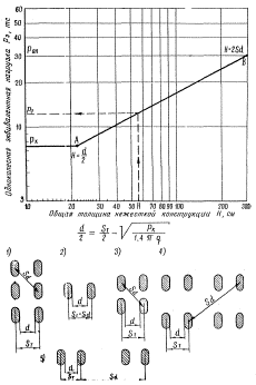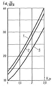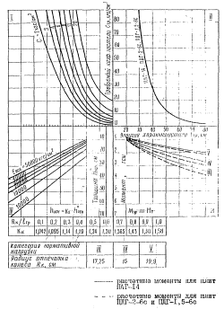 Рис. 2. График для определения сопротивления сдвигу одной шпоры в грунтах: 1 - глинистых; 2 - суглинистых и супесчаных; 3 - песчаных Конструктивное армирование плиты и шпор анкера производится стержнями диаметром 12 мм, располагаемыми соответственно через 25-30 и 40-50 см. Защитный слой принимают равным 4 см для арматуры плит, 5 см для арматуры шпор. Приложение 6РАСЧЕТНЫЕ ТАБЛИЦЫ И НОМОГРАММЫРасчетные характеристики самолетов и вертолетов гражданской авиации