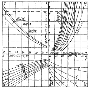 Но номограмме на рис. 19 определяется удельное растягивающее напряжение при изгибе δr в асфальтобетоне от нагрузки