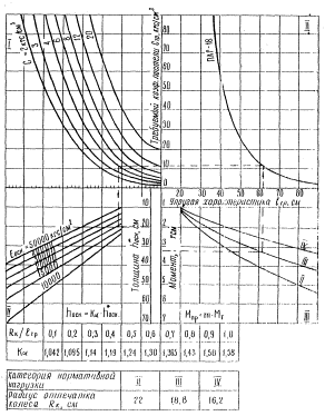 вычисляется отношение Мр/Мпр; по графику на рис. 1 определяется величина отношения hосн/hп. Требуемая толщина укрепленного основания hосн определяется по формуле