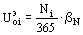 Ui - число приложений нагрузки от опоры i-го воздушного судна на покрытие; nос - число осей на основной опоре i-го воздушного судна; Ni - расчетная интенсивность движения i-го воздушного судна; a