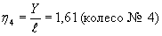 η4 = 1,54. Единичные изгибающие моменты от соседних колес: