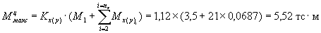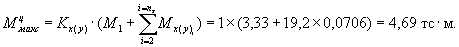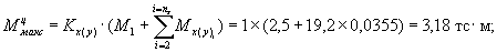 Максимальный момент от действия всех колес опоры