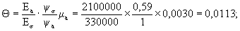 где Еа - модуль упругости арматуры; Eσ - начальный модуль упругости бетона, принимаемый по табл. 8 (21) Fa - площадь сечения растянутой арматуры; ho - рабочая высота сечения (расстояние от сжатой грани сечения до центра тяжести растянутой продольной или поперечной арматуры). В расчете учитывается наименьшее значение ho h - толщина плиты; x - высота сжатой зоны бетона в сечении; d - номинальные диаметр арматурных стержней; ψa - коэффициент, учитывающий работу бетона между трещинами в растянутой зоне и принимаемый равным при расчете по прочности 0,2, при расчете по раскрытию трещин 1; ψδ - коэффициент, учитывающий неравномерность распределения деформаций крайнего волокна сжатой зоны сечения на участке между трещинами и принимаемый в зависимости от отношения шага арматуры ℓа, параллельной рассматриваемому сечению, к толщине плиты h: