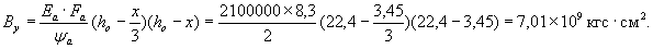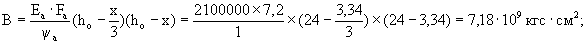 Принятые толщины слоев: верхнего армобетонного - 24 см - hв; нижнего бетонного - 22 см - hн. Жесткость верхнего слоя Bв = 0,085×Eσ×bhв3 = 0,085×330000×100×243 = 38,8×109 кгс·см2. Жесткость нижнего слоя Bн = 0,085×Eσ×bhн3 = 0,085×330000×100×223 = 24,0×109 кгс·см2. Суммарная жесткость слоев B = Bв + Bн = 38,8×109+24,0×109 = 62,8×109 кгс·см2. Упругая характеристика плиты