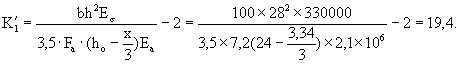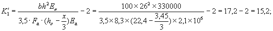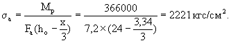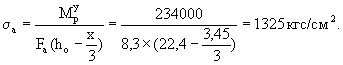 Принято μa = 0,37 %, тогда Fа = bhoμa = 100×22,4×0,0037 = 8,3 см2, ψσ = 0,6; ψа = 0,2;