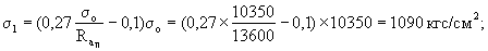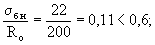где Ro - передаточная прочность бетона, принимается 0,5М = 0,5×400 = 200 кгс/см2; σбн = 22 кгс/см2; a = 0,6;