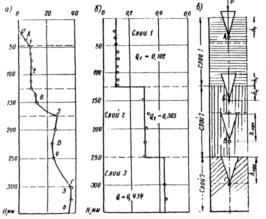 2) для медленной отсыпки, при которой нагрузка на основание остается практически постоянной и равной расчетной в результате того, что толщина наращивается лишь по мере осадки ее нижней части.