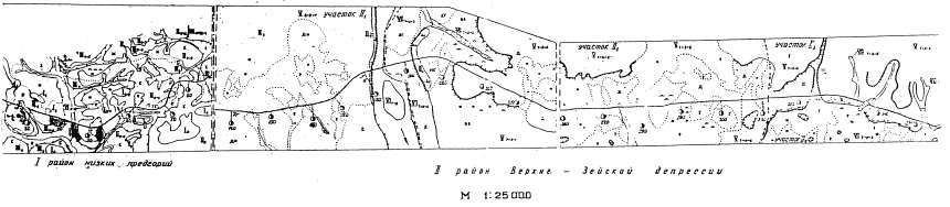 II. Район Верхне-Зейской депрессии с эрозионно-аллювиальным рельефом долинного комплекса р. Зея характеризуется глубоким погружением коренного фундамента, перекрытого мощным покровом аллювиальных и аллювиально-пролювиальных отложений, высокой степенью заболоченности территории и широким распространением криогенных процессов |
