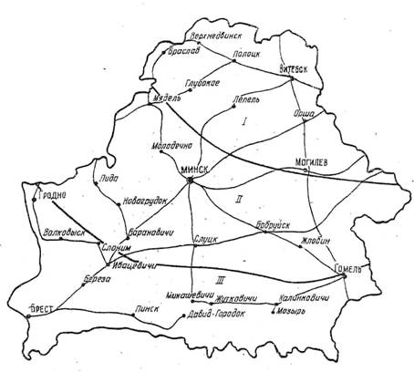Рис. 1. Дорожно-климатическое районирование территории БССР