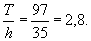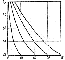 Из полученной точки на кривой восстанавливают перпендикуляр до пересечения прямой, соответствующей вычисленному значению T/h.
