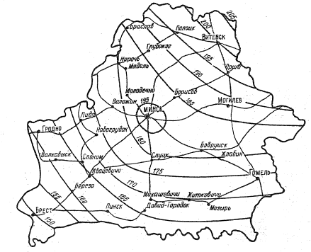 3.3. В пределах II дорожно-климатической зоны на территории БССР выделены три климатических района (рис.1).