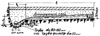 Зная стоимость песков, труб, производства работ и т.д., проектировщик имеет возможность выбрать наиболее оправданный в технико-экономическом отношении вариант дренирующего слоя с соответствующими дренажными выпусками воды.