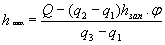 Примечание. Значения φ соответствуют запасной толщине, принимаемой по рис. 1. § 20. В случае (q2 - q1) hзапφ > Q расчетная толщина дренирующего слоя (см) составляет: