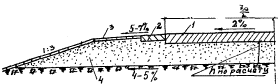 § 21. Если местные пески не удовлетворяют требованиям § 13, то, возможно, их применение для возведения верхней части насыпи толщиной слоя 0,4-0,6 м (рис. 4), принимаемой в зависимости от категории дороги, качества самого песка. В этом случае снижаются требования к качеству песков, и для II зоны К ≥ 1 м/сутки (при K0 = 1,0), - а для III зоны К ≥ 0,5 м/сутки.