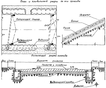 Рис. 12. Схема сброса воды из продольных дренажей мелкого заложения непосредственно в водоприемники (размеры в см)