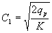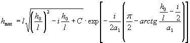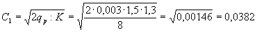 где qp = q·Kn·K3 - расчетный приток свободной воды, м3/м2; q - приток воды в дренирующий слой, м3/м2 в сутки (см. табл. 1); Kn - коэффициент “пик”, учитывающий неустановившийся режим работы дренирующего слоя (см. § 14); K3 - коэффициент гидрологического запаса, учитывающий снижение коэффициента фильтрации в процессе эксплуатации автомобильной дороги (см. § 15) l - длина пути фильтрации, м; i - оперечный уклон корыта или поверхности земляного полотна в долях единицы; h0 - глубина фильтрационного потока в местах сброса свободной воды, м (см. рис. 3) Зная допустимое значение hmax фильтрации l и поперечный уклон корыта вычисляют соответствующую величину коэффициента С. По величине С для расчетного количества воды, поступающего в корыто qp, и находят (см. уравнение 2) требуемый коэффициент фильтрации песков, допускаемых для устройства дренирующих слоев дорожных одежд. Примечание. Применение данного уравнения оправдано при значениях: