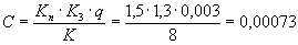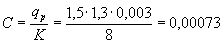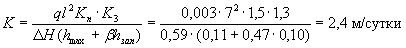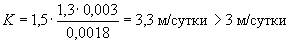Но для данного участка q = 0,003 м3/сутки на 1 м2. Коэффициент "пик" Кп = 1,5 (см. § 14). Коэффициент гидрологического запаса Кз = 1,3 (см. § 15). Подставив данные значения в выражение (2), получим требуемый коэффициент фильтрации песка, допускаемого для устройства дренирующего слоя: