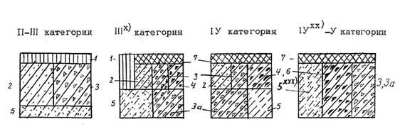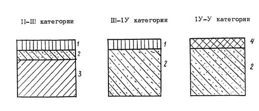 22. Указанные разновидности песков могут быть также укреплены битумной эмульсией совместно с цементом. Такие грунты применяют для устройства верхних слоев оснований или оснований под капитальные и усовершенствованные облегченные покрытия на дорогах II-IV категорий, а также покрытий облегченного типа со слоем износа на IV и второстепенных дорогах III категории (подъездные пути, дороги с интенсивностью до 1500 авт./сутки с преимущественным движением автомобилей малой и средней грузоподъемности) (табл. 1).