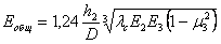 Примечание. Добавка в зологрунт цемента, извести или электролита повышает расчетные характеристики на 15 - 20 %. 4.3. Проектируемую конструкцию приводят к трехслойной системе (рис.2); при этом общий модуль упругости Е3, подстилающего монолитный слой полупространства определяют по ВСН 46-72. Если покрытие многослойное, то его модуль упругости Е1 определяют как средневзвешенный. 4.4. Рассчитывают слой из укрепленных материалов на растяжение при изгибе. Для этого сначала определяют эквивалентную упругую характеристику Lэкв двухслойной плиты (покрытие + основание из монолитного материала) по формуле:
