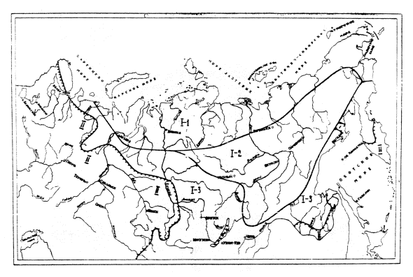 Рис. 3.1. Схема дорожно-климатических районов зоны вечной мерзлоты: I1 - северный; 12 - центральный; I3 - южный; II - дорожно-климатическая зона Таблица 3.1 Характеристика и границы районов зоны вечной мерзлоты