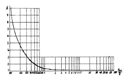 Рис 4.2. График для определения коэффициента влияния мерзлого слоя А на величину