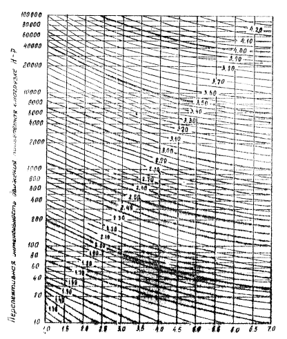 где Етр - требуемый общий модуль упругости дорожной конструкции, определяемый по ВСН 46-72, то есть без учета длительности расчетного периода; Р - нагрузка от расчетного автомобиля на дорожное покрытие, н/м2; λд - допустимый упругий прогиб дорожной конструкции, устанавливаемый в зависимости от материала покрытия и условий его работы в рассматриваемом районе; К - коэффициент, учитывающий длительность расчетного периода. Автором установлена средние значение коэффициента К для всех дорожно-климатических районов зоны вечной мерзлоты: для района I1 К = 1,3; I2 К = 1,2; I3 К = 1,1. Разработана такая номограмма (рис. 4.6.), позволяющая дифференцированно определить коэффициент К для различных конкретных пунктов зоны вечной мерзлоты [6]. Нормативную нагрузку на дорогах общей сети (I - V категорий) и для городских дорог принимают по табл. 4.2.