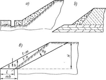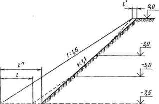 на склонах круче 25° выработки необходимо проходить до коренных пород и заглублять в них на 0,5 м.