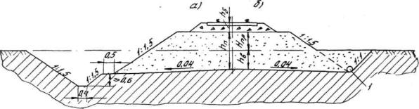 где Vв - объем воды, доли единицы; γ TO - плотность торфа, принимается равной 1500 кг/м3. 5.18. Минимальную высоту насыпей на участках с пучинистыми грунтами основания, в том числе на подходах к мостам и трубам, следует назначать не менее величины hn , определяемой по формулам (7) или (10). 5.19. На подходах к выемкам, водопропускным сооружениям, в местах пересечения отдельных бугров, где исключается возможность соблюдения условия п.5.18, необходимо предусматривать замену пучинистых грунтов основания дренирующими на глубину hв (рис. 5), определяемую по формуле