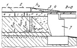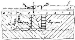 Здесь hдоп - допустимая величина пучения грунта (см. табл. 2); ко - коэффициент, характеризующий особенности промерзания и пучения; его значение можно принимать равным 1,0 для условий сезонного промерзания и несливающейся мерзлоты и 0,7 для условий сливающейся мерзлоты; f р - расчетная интенсивность пучения грунтов, %