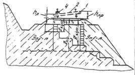 рельсов в зависимости от скорости движения поездов; при V £ 5.22. При возведении насыпей из разнородных грунтов в пределах глубины сезонного промерзания не допускаются очаговое размещение и укладка слоев пучинистых грунтов переменной толщины в продольном и поперечном сечениях насыпи. Слои пучинистых грунтов необходимо сопрягать со слоями непучинистых грунтов на длине, определяемой по формуле (24). Рис. 5. Схема устройства подушки из дренирующего грунта с заменой пучинистого грунта в основании низкой насыпи: а - на непросадочном основании; б - на просадочном основании; 1 - дренажная труба; Нпр - высота насыпи по продольному профилю; hв - толщина слоя замены пучинистого грунта Рис. 6. Схемы продольного сопряжения слоя дренирующего грунта, размещаемого в верхней части зоны промерзания - оттаивания: а - со скальными грунтами основания; б - со слоем дренирующего грунта толщиной hп . равной глубине его промерзания - оттаивания; 1 - пучинистый грунт; 2 - дренирующий грунт; 3 - скальный грунт; 4 - положение пути летом; 5 - положение пути зимой; значения hп, hб , hg , hдоп, zррпр.от, iдоп„ . приведены в пояснениях к формулам (7), (10), (24). в табл. 2 п. 5.21 5.23. Толщину слоя дренирующего грунта на подходах к мостам следует определять расчетом из условия обеспечения плавного изменения продольного уклона пути в пределах переходных участков земляного полотна согласно рекомендациям п.5.21 (рис. 7). При этом необходимо