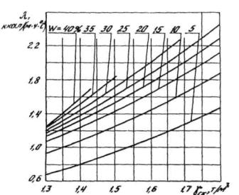 Рис. 3. Значения коэффициента теплопроводности талых глинистых грунтов в зависимости