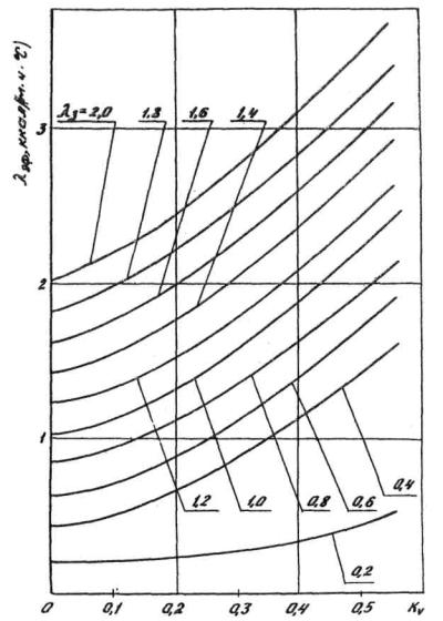 в зависимости от значений коэффициента теплопроводности мелкозернистого заполнителя λз в талом состоянии и объемного содержания крупных частиц кv