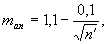 Если число стержней рабочей арматуры в расчетном сечении железобетонного элемента n > 4, допускается увеличить расчетное сопротивление Ra арматуры класса Ат-III, умножая его на дополнительный коэффициент условия работы mап, величина которого определяется по формуле: