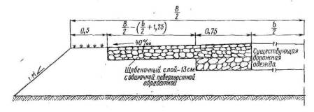 слоем основания прикромочных полос из щебня укрупненных фракций