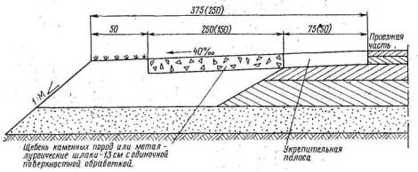 конкретном случае проектом в зависимости от грунтов земляного полотна и