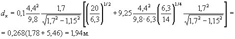 где m0 - коэффициент заложения естественного откоса камней под водой (для практических расчетов m0 = 1,3-1,1, где большие значения принимают для округлых, а меньшие - для угловатых камней). При отсутствии поперечных сооружений dк рассчитывают по следующим формулам: для пойменных насыпей