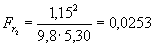 Определяем по формуле (1) глубину потока на вертикали с наибольшим силовым воздействием