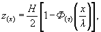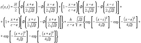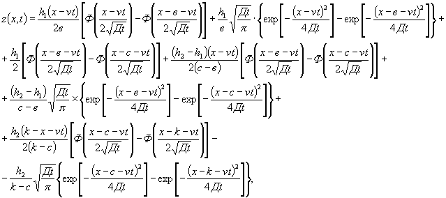 где z, х - координаты точек контура насыпи; v - скорость смещения грунтов оползневого склона; в, с, h1, h2, k - геометрические характеристики насыпи;