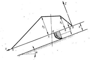 Рис.3. Схема к расчету скорости деформирования контура насыпи на оползневом склоне 67. Скорость смещения оползневого склона v может быть оценена по формуле