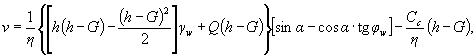 63. В случае, если оползневый склон в зоне активных подвижек сложен пластичными глинистыми грунтами, для которых jw = 0 и Сс = 0, то формула (15) упрощается и принимает следующий вид: