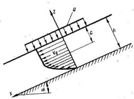 Рис.2. Схема к оценке скорости смещения поверхности оползневого массива 62. Мощность "мертвой" зоны зависит главным образом от величины структурного сцепления Сс и определяется по выражению