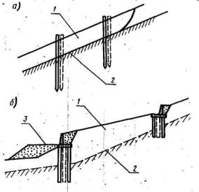 Принципы назначения противооползневых конструкций74. Противооползневые удерживающие конструкции (подпорные стены, свайные поля, анкерные конструкции и т.п.) являются одним из элементов всего комплекса противооползневых мероприятий осуществляемых для обеспечения устойчивости как склона при сооружении на нем земляного полотна, так и конструкции самого земляного полотна. 75. Тип удерживающей конструкции следует назначать исходя из типа оползня, видов грунта, инженерно-геологического строения склона, мощности оползневых накоплений, физико-механических свойств грунтов и т.п. 76. Подпорные стены, применяют: при наличии устойчивых коренных пород, на которых можно закрепить основание стенки; если грунты оползневого склона находятся в консистенции, при которой исключена возможность переползания их через стенку; если есть возможность дополнительно обеспечить устойчивость стенки с помощью свайных и анкерных конструкций. 77. Анкерные конструкции используют: для профилактики существующих конструкций подпорных стен; при наличии прочных и устойчивых коренных пород, подстилающих толщу смещающихся грунтов склона и при достаточной прочности самих оползневых накоплений во избежание вдавливания в грунт анкерных плит; при разгрузке свайных конструкций. 78. Свайные конструкции рекомендуется применять на оползневых склонах при наличии хорошо выраженной поверхности скольжения. Основным элементом свайных конструкций являются железобетонные сваи, которые в зависимости от конкретных грунтовых условий могут быть забивными или буронабивными. 79. Свайные конструкции могут иметь следующие основные конструктивные схемы (рис.8): отдельные свайные поля с рядовым или шахматным расположением свай, объединенных поверху железобетонной плитой ростверка; система, расположенных, на разных ярусах свайных полей; подпорные стены с фундаментом из буронабивных свай.